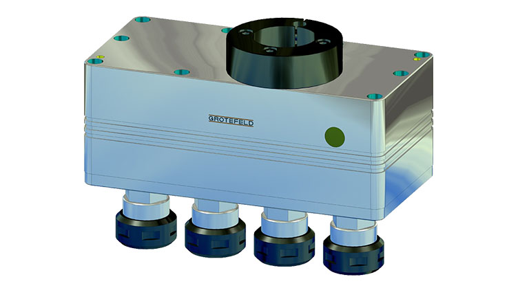 帶有夾緊環 B100 的 VS16 齒輪箱也可以由鉆孔主軸 B045 和驅動單元 D045 驅動。此外,使用我們的驅動適配器 DN 和 DMN 可以適應機床主軸以及 GROTEFELD 旋轉單元 DVM。
