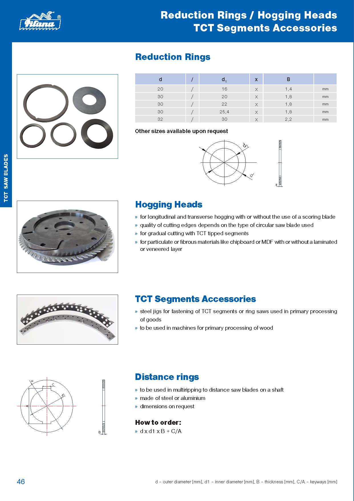 D—葉片直徑[mm],S—齒寬[mm],S—體厚[mm],D—孔徑[mm],z—齒數(shù),H max–最大切割高度[mm],dp max–最大法蘭直徑[mm],dmax–最大鉆孔直徑[mm],●– 有現(xiàn)貨的,○ – 按客戶要求制造