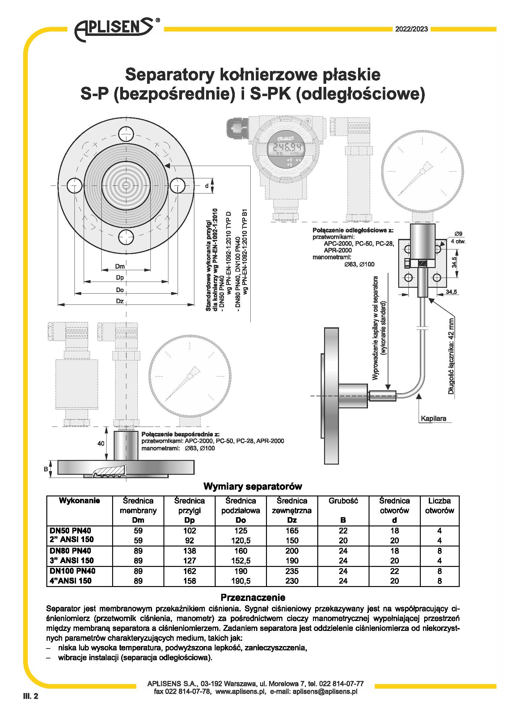 SP型扁平法蘭分離器--波蘭APLISENS