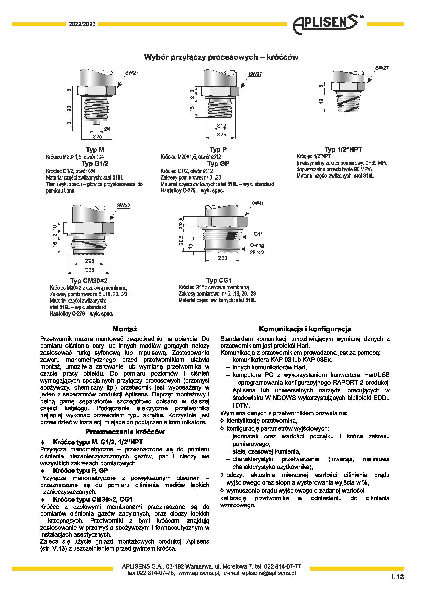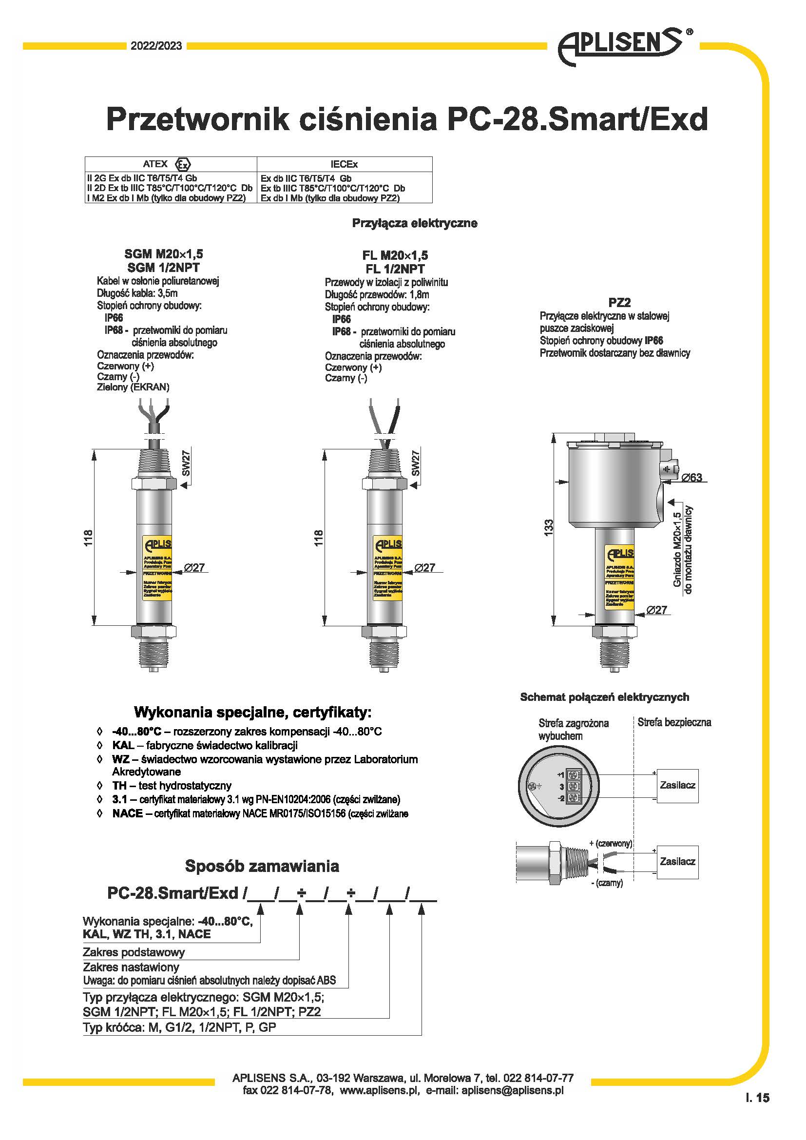 4 ÷ 20 mA輸出信號+ Hart 協議。基本誤差0.1%ATEX證書