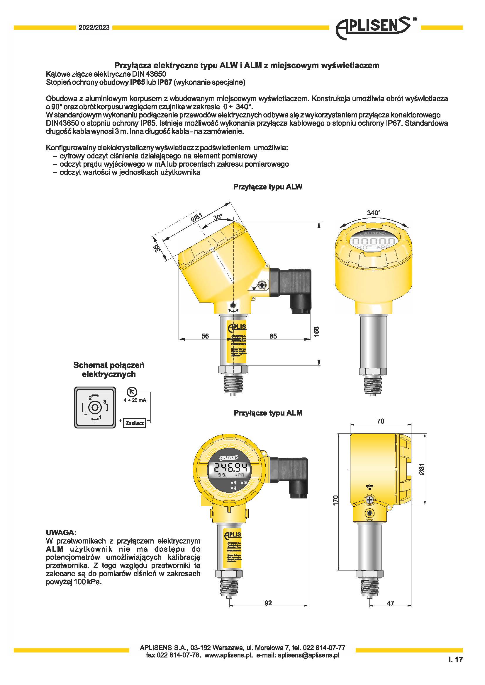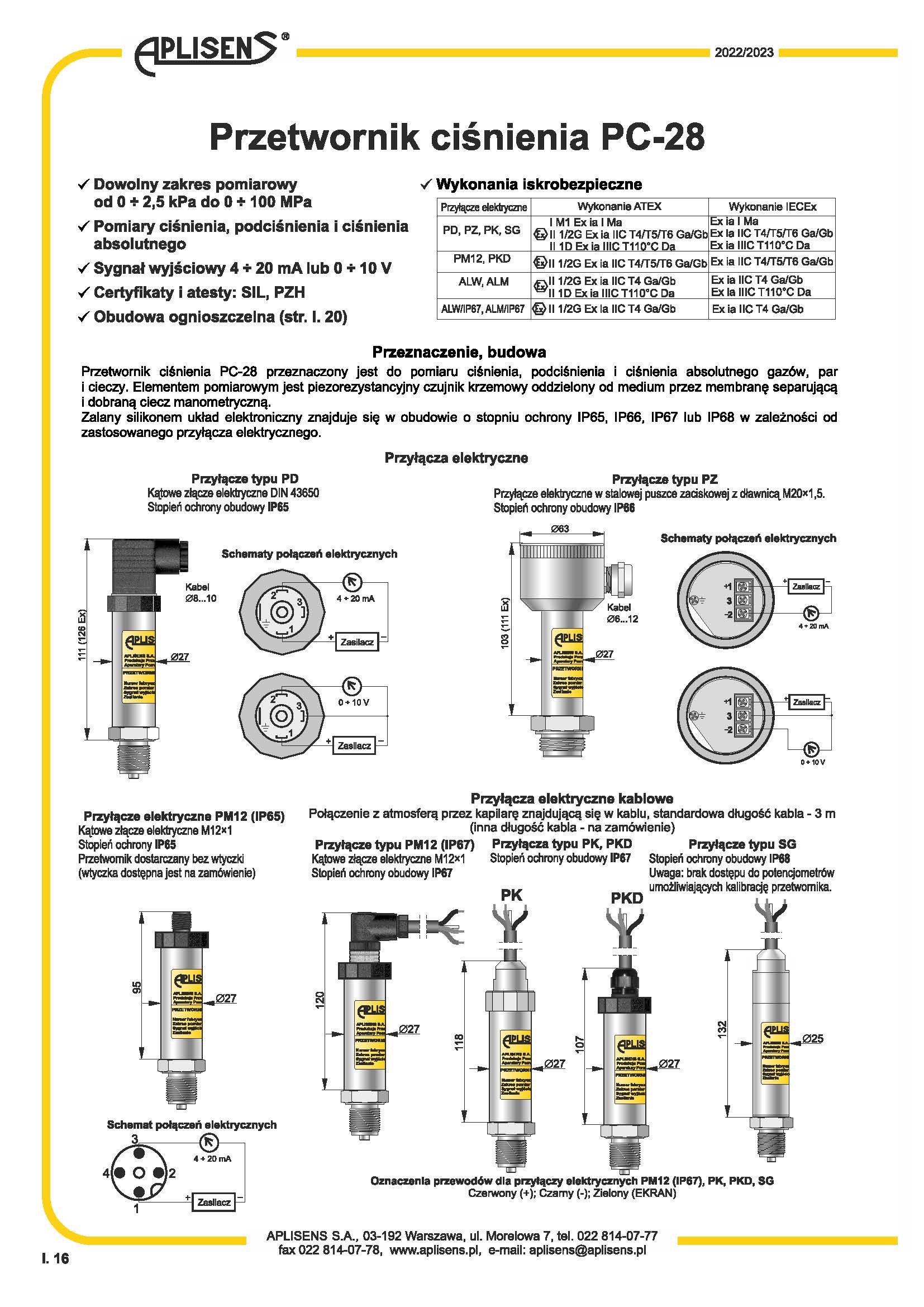 輸出信號:4 ÷ 20mA , 0 ÷ 10V ,