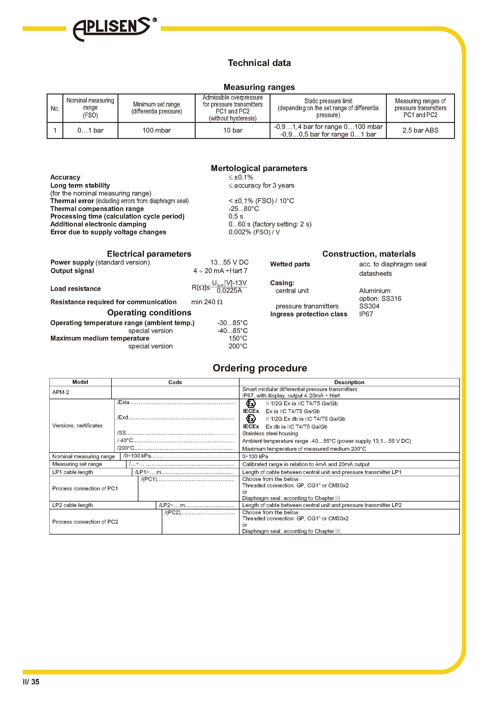 輸出信號(hào) 4 ÷ 20 mA + HART