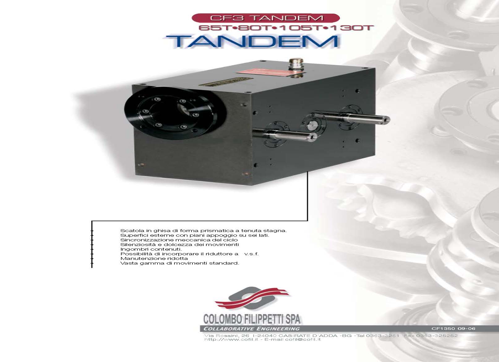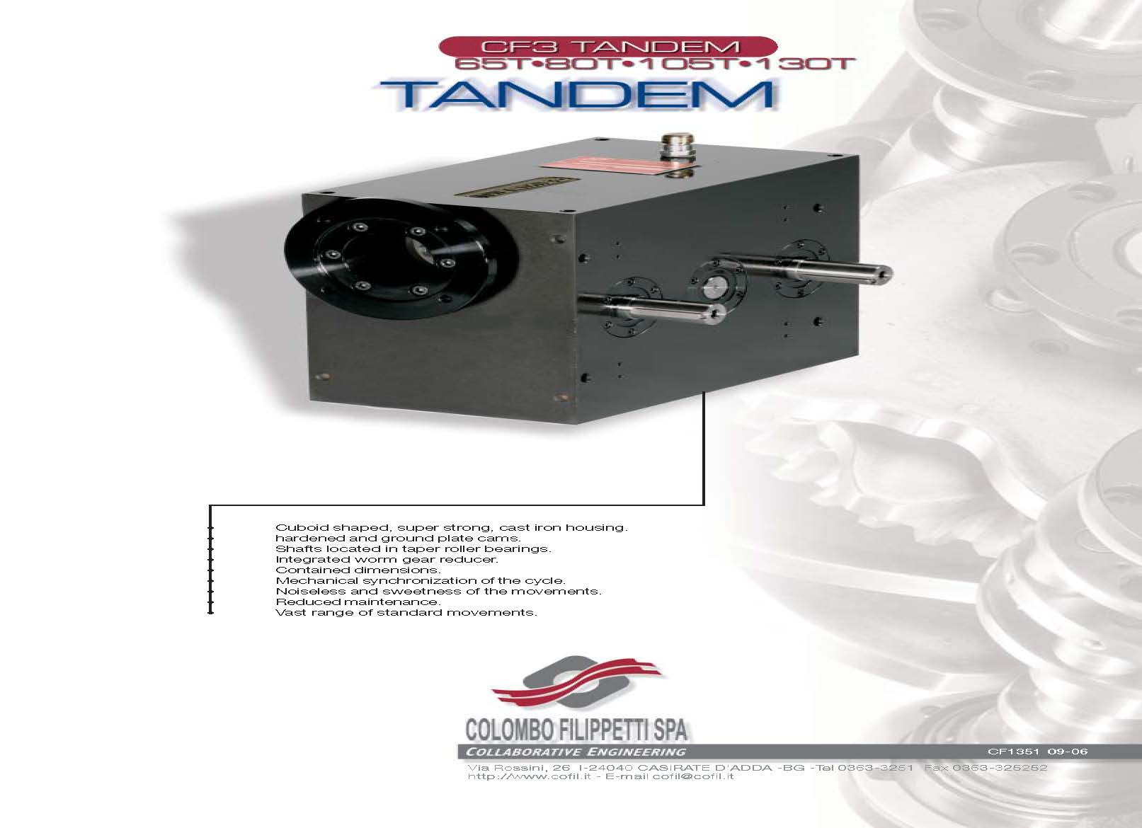 COLOMBO FILIPPETTI spa 的 TANDEM CF3 是一種機(jī)構(gòu),在一個(gè)盒子內(nèi)結(jié)合了兩組互補(bǔ)的輪廓凸輪和 CF3 系列的滾子從動(dòng)件。