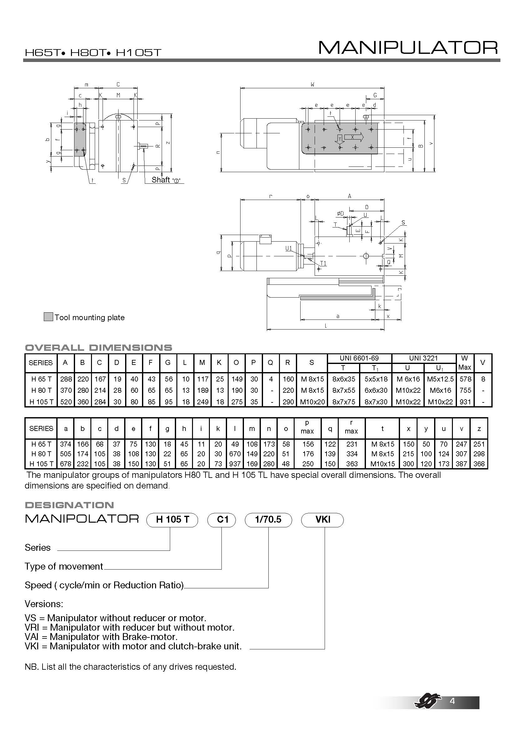 | 標(biāo)準(zhǔn)尺寸: | H65T - H80T - H105T |