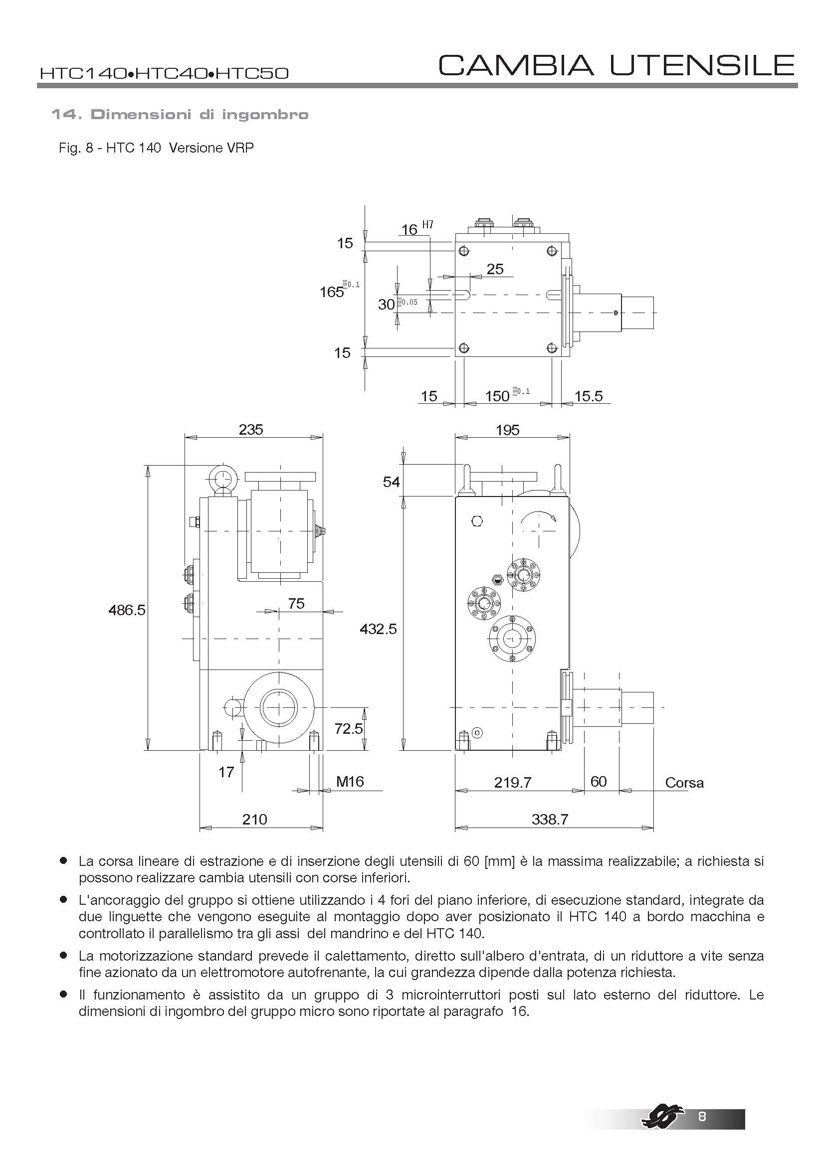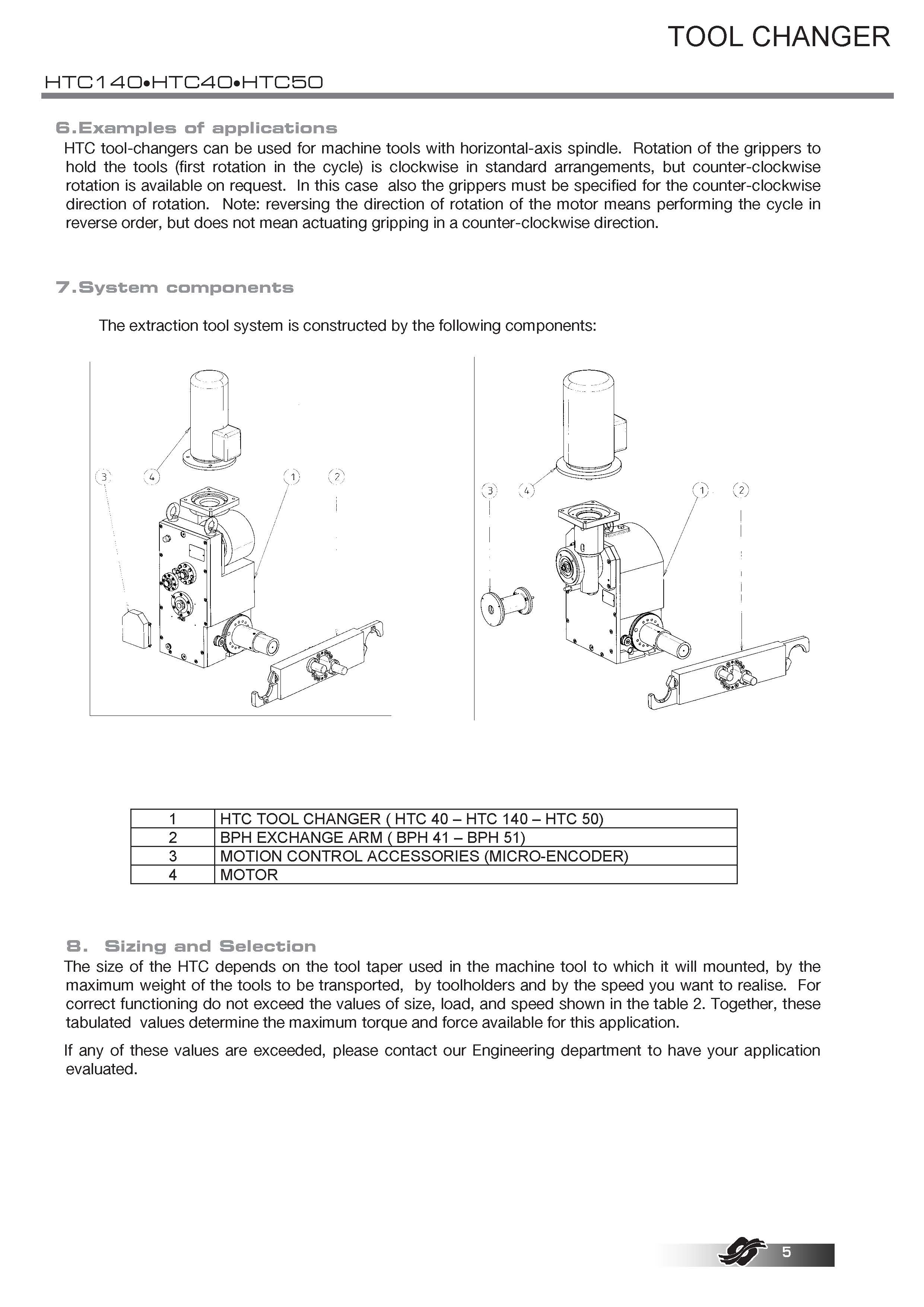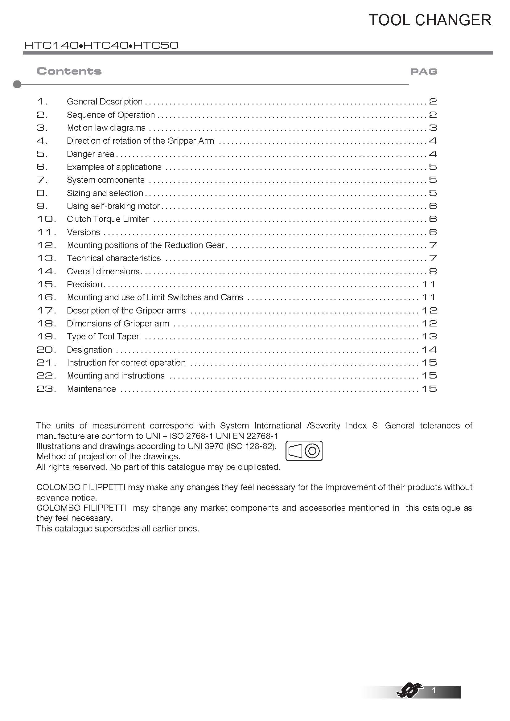 COLOMBO FILIPPETTI spa 的 HTC(臥式換刀裝置)是機械式且完全自主的換刀裝置,它通過凸輪機構(gòu)將齒輪電機裝置提供的均勻傳入旋轉(zhuǎn)運動轉(zhuǎn)換為一系列有序的間歇線性輸出軸的旋轉(zhuǎn)運動,工具夾具的臂鍵鎖在輸出軸上。